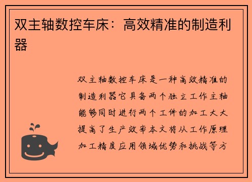 简介: 数控卧车床是一种高精度、高效率的机械设备,广泛应用于工业生产中。由于长时间使用或操作不当,数控卧车床也会出现各种故障。这些故障可能导致生产延误、设备损坏甚至事故发生。掌握数控卧车床故障维修技巧成为解决难题的关键。 小标题1:常见数控卧车床故障 故障一:刀具磨损严重 自然段1:刀具是数控卧车床...
